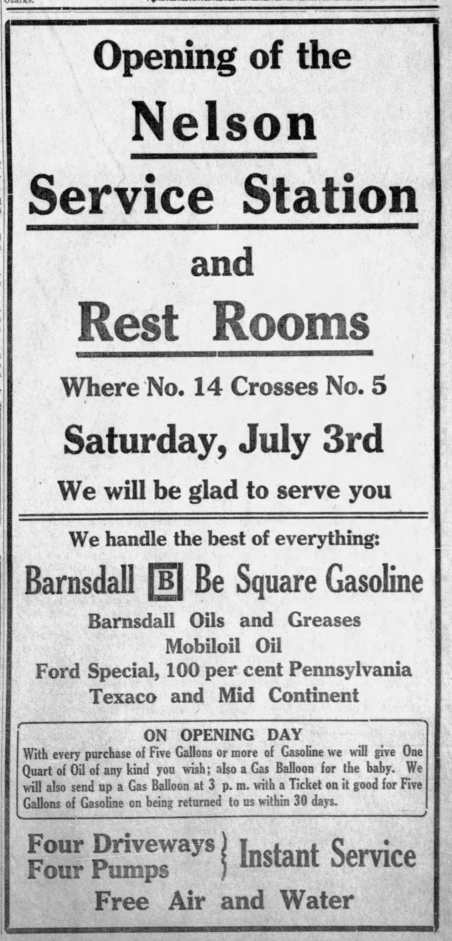 By 1929 the Laclede County Republican insisted, “Of the thousands on thousands of travelers who have pursued the concrete thread between Chicago, Illinois, through Missouri, Oklahoma, Texas, New Mexico, Arizona, and California, to Los Angeles, probably more of them hold in memory ‘Nelsonville,’ Col. Arthur T. Nelson’s cottages, artistic filling station, the Top o’ the Ozarks Inn, the flowers and trees and beautiful surrounds than remember any other place on the great highway.” Such was Nelsonville’s allure that “Tourists, on return trips, have been known to extend their day’s journey 100 miles in order to make the Nelson camp ground for the night.”