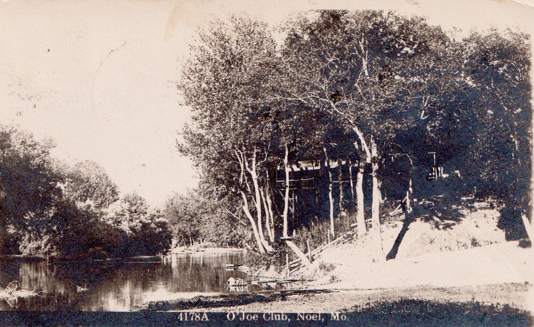 The O’Joe Club, however, did not survive to witness this new era in Ozarks tourism. By 1920 the property had been renamed Shady Nook. What happened to the clubhouse is unclear; it may have burned or been demolished. Fittingly, its spot on the banks of Elk River and Butler Creek was occupied in 1925 by a new business, the legendary music venue Shadow Lake.