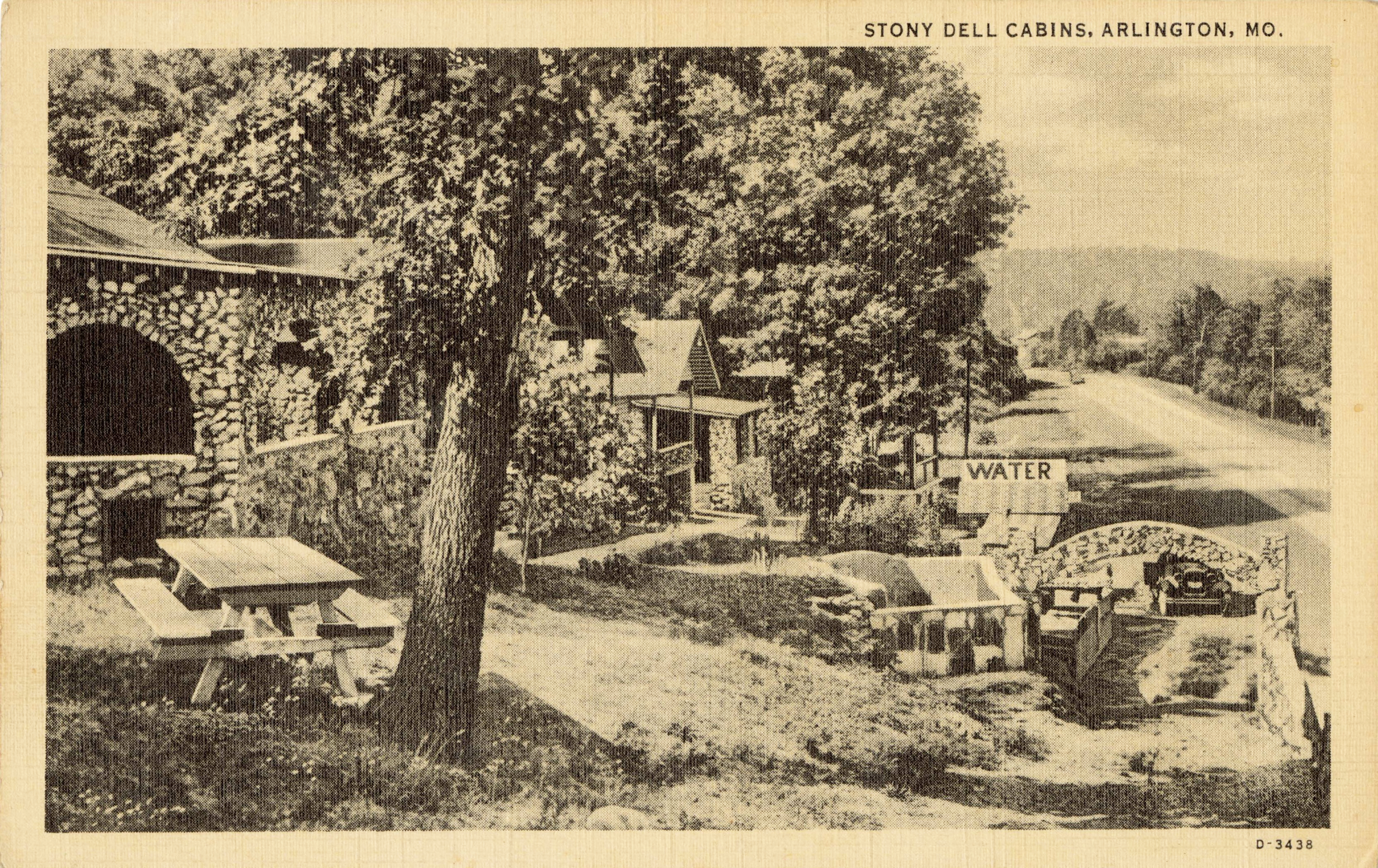 Phelps County native Clarence “Vern” Prewett was one of many ambitious individuals who recognized the possibilities of the new highway. His father George’s success as a farmer and merchant likely emboldened Prewett to pursue his own economic endeavors after working in construction and as a truck driver. When he began building the resort, Prewett may not have anticipated that it would become a landmark on the Mother Road. Situated on his father’s land, Stony Dell was a stone’s throw from George Prewett’s Hi-Wa Trading Company store and filling station. Like many roadside entrepreneurs, Vern Prewett used inexpensive, locally available materials to save money. Relying on rocks and stones harvested from the rugged Missouri Ozarks, Prewett likely began construction in the late 1920s with the help of local laborers. At first the development was referred to by newspapers as “Hiwa,” but the name apparently never caught on, so Prewett adopted the far more descriptive “Stony Dell.”